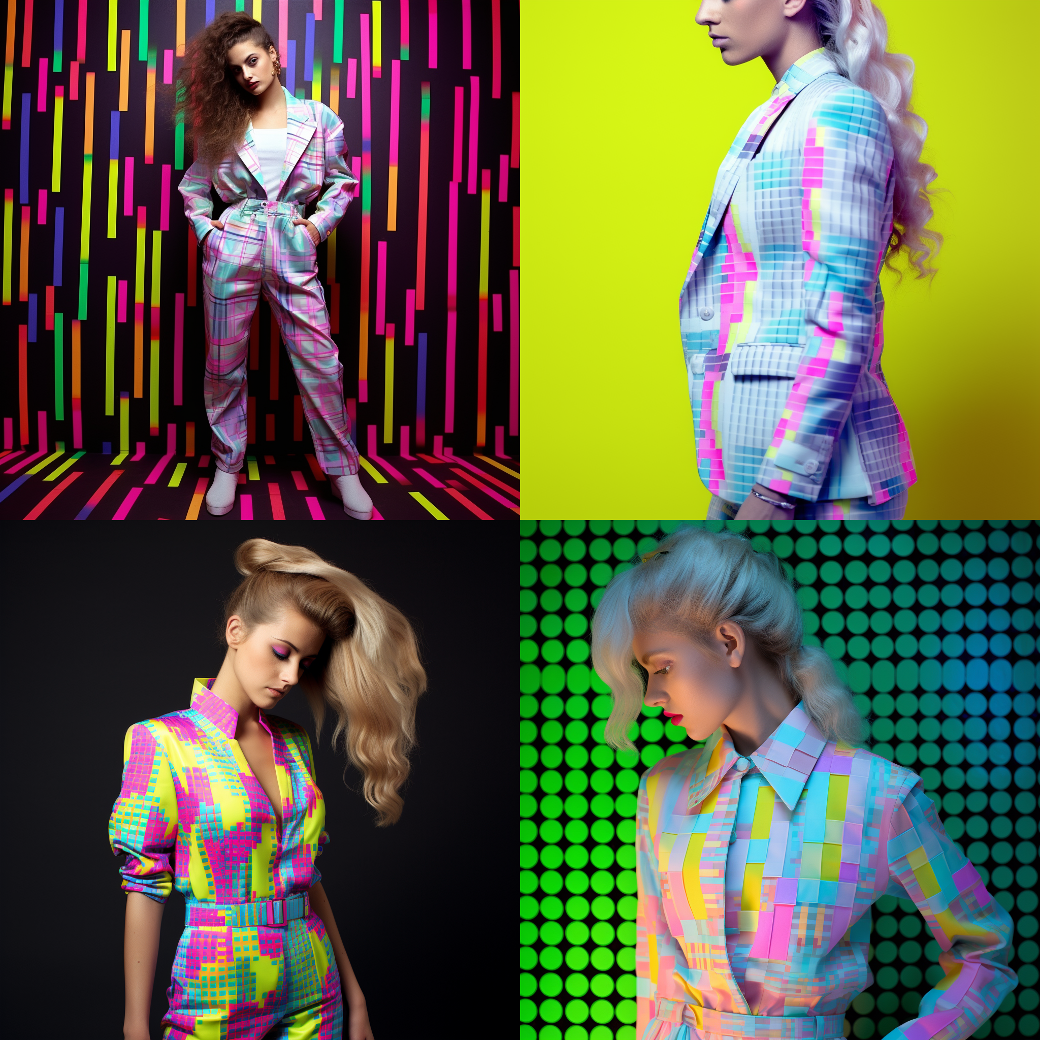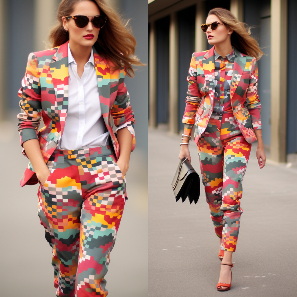 Neon is not just a hue; it's an unapologetic statement of self-expression, a neon rebellion the beige conformity of yesteryear. Imagine the audacity of 80s power suits crashing into the cyberpunk scene of the 90s, and you've got the visionary vibe of this trend. Our sartorial soothsayers are calling it: Geometric prints, pixelated patterns, and a kaleidoscope of hues are about to invade your Instagram feeds. These suits, tailored to pixel-perfection, are a siren call to the bold and the beautiful, the influencers and the influenced.